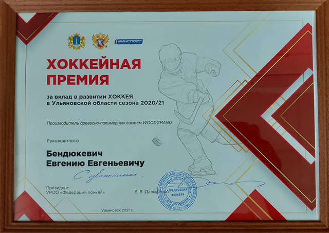 Поддержка регионального спорта всегда была частью "жизненной позиции" компании WOODGRAND.В 2020 году мы с большим удовольствием откликнулись на возможность поучаствовать в развитии "родной" Ульяновской федерации хоккея. Вдвойне приятно видеть, когда усилия направлены на поколение юных хоккеистов.